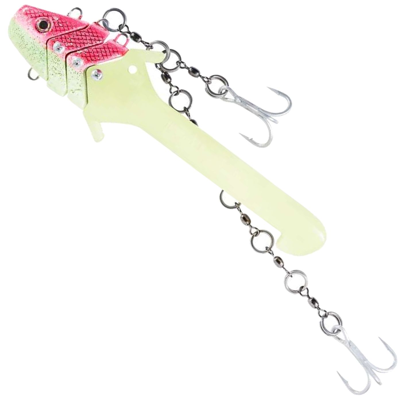 Balzer Adrenalin Dead Bait System - Meeressystem Deadbait - Der Meeresköder von Balzer wurde zum Hochseeangeln mit totem Köderfisch entwickelt und er lässt sich sehr gut zum Naturköderangeln auf Dorsch, Heilbutt, Leng und andere Meeresfische einsetzen. Durch das Stecksystem kann im Handumdrehen das Gewicht des Köders zwischen 200g, 325g und 450g variiert werden. Die robuste Kette aus Edelstahl-Sprengringen und Wirbeltonnen ist mit zwei sehr starken Salzwasser-Drillingen ausgestattet.
