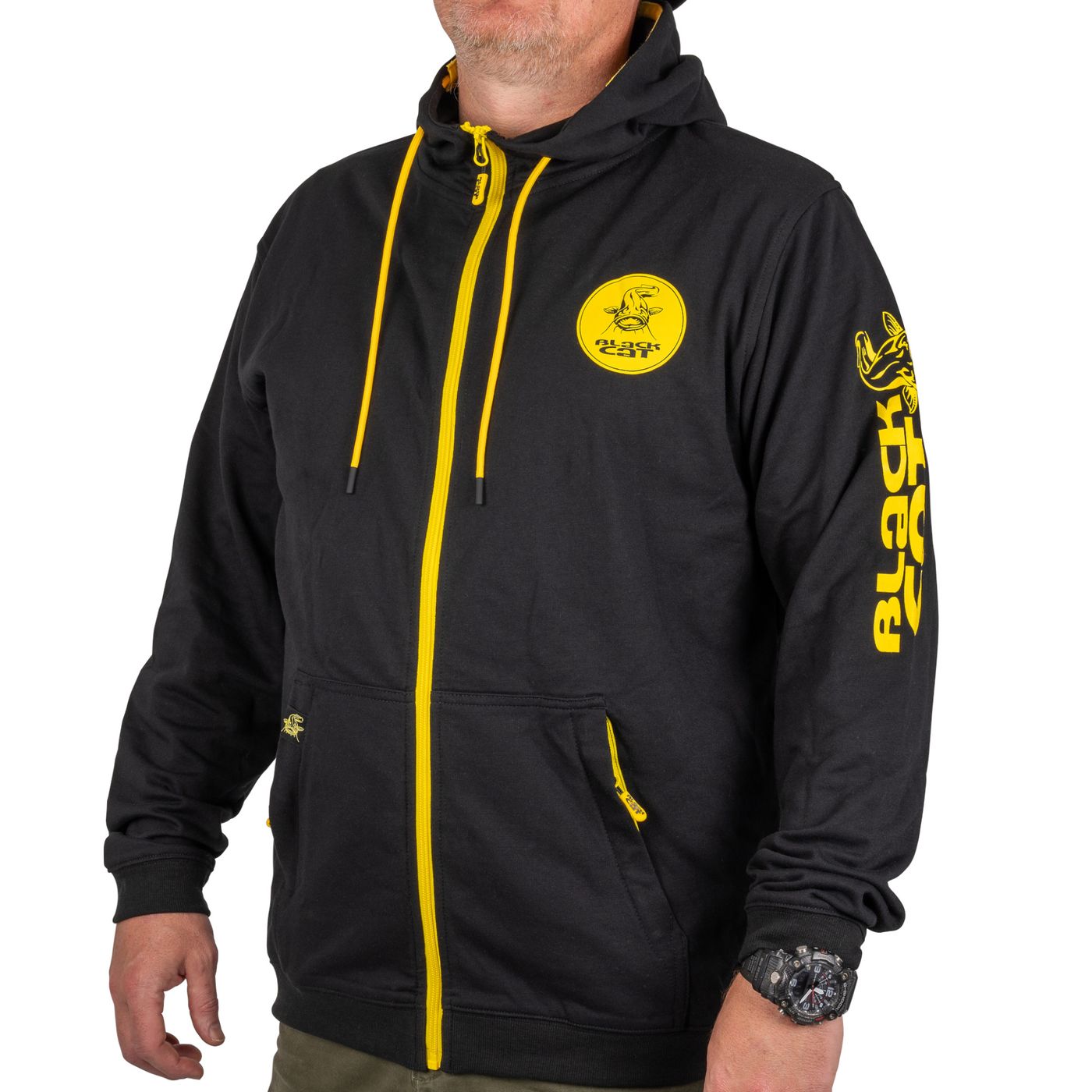 Ob beim Ansitz auf Wels oder unterwegs zur nächsten Angelstelle: Mit dem Black Cat Black Zip Hoody genießt du flexiblen Komfort und hohen Schutz vor kühler Luft. Der durchgehende Reißverschluss sorgt dafür, dass du den Hoody einfach an- und ausziehen kannst – auch bei wechselhaftem Wetter.