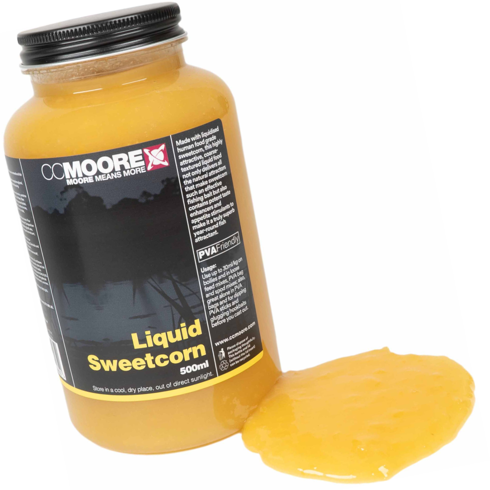 CC Moore Liquid Sweetcorn 500ml: PVA-freundlicher Flüssigköder mit süßem Maisaroma – gut für Karpfen und Schleien. Jetzt im Angelshop bestellen!