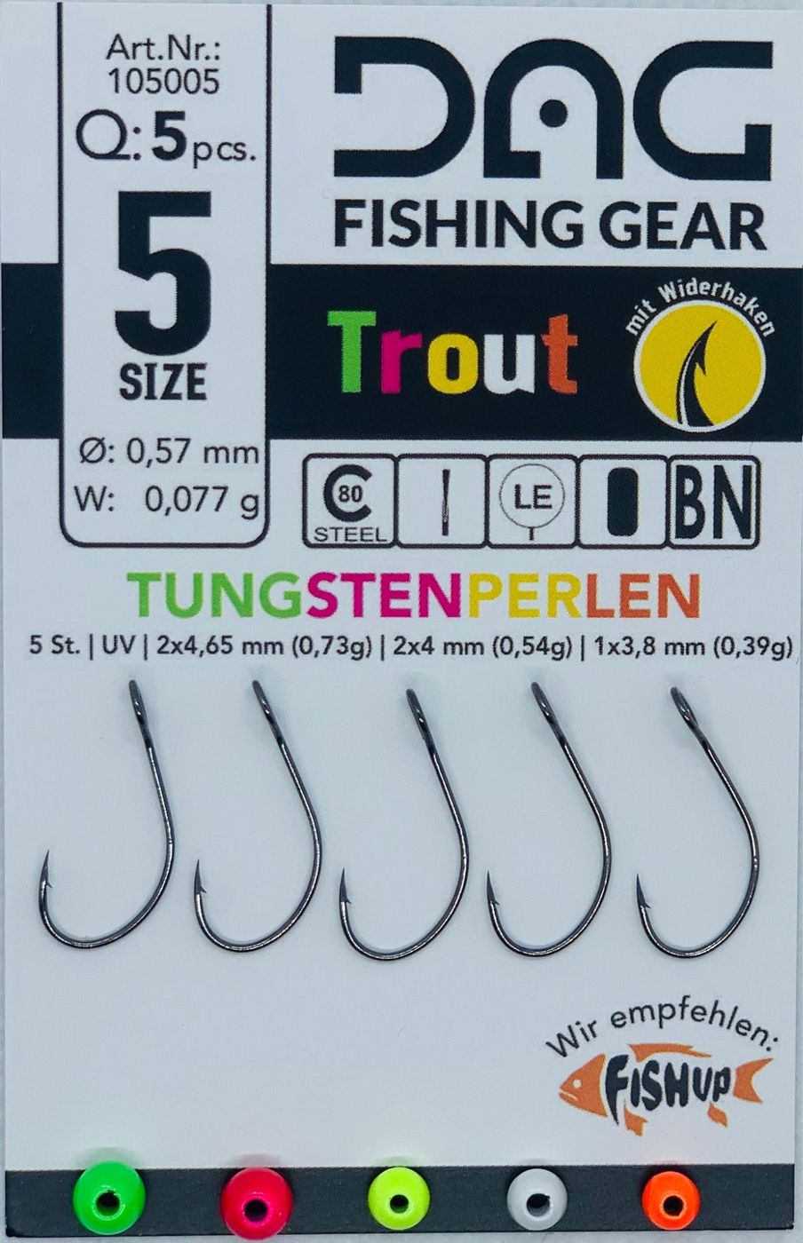 DAG Trout Hook + Tungstenperlen - 5 Forellenhaken