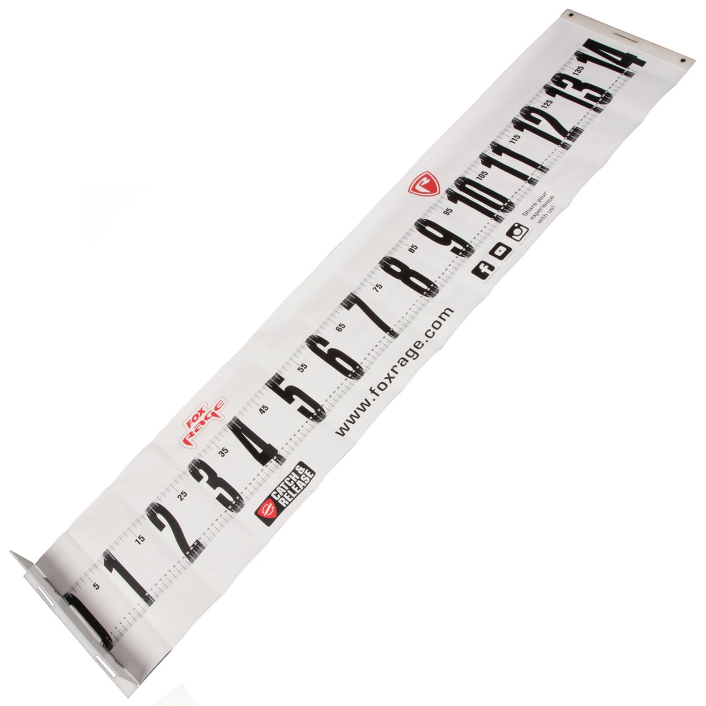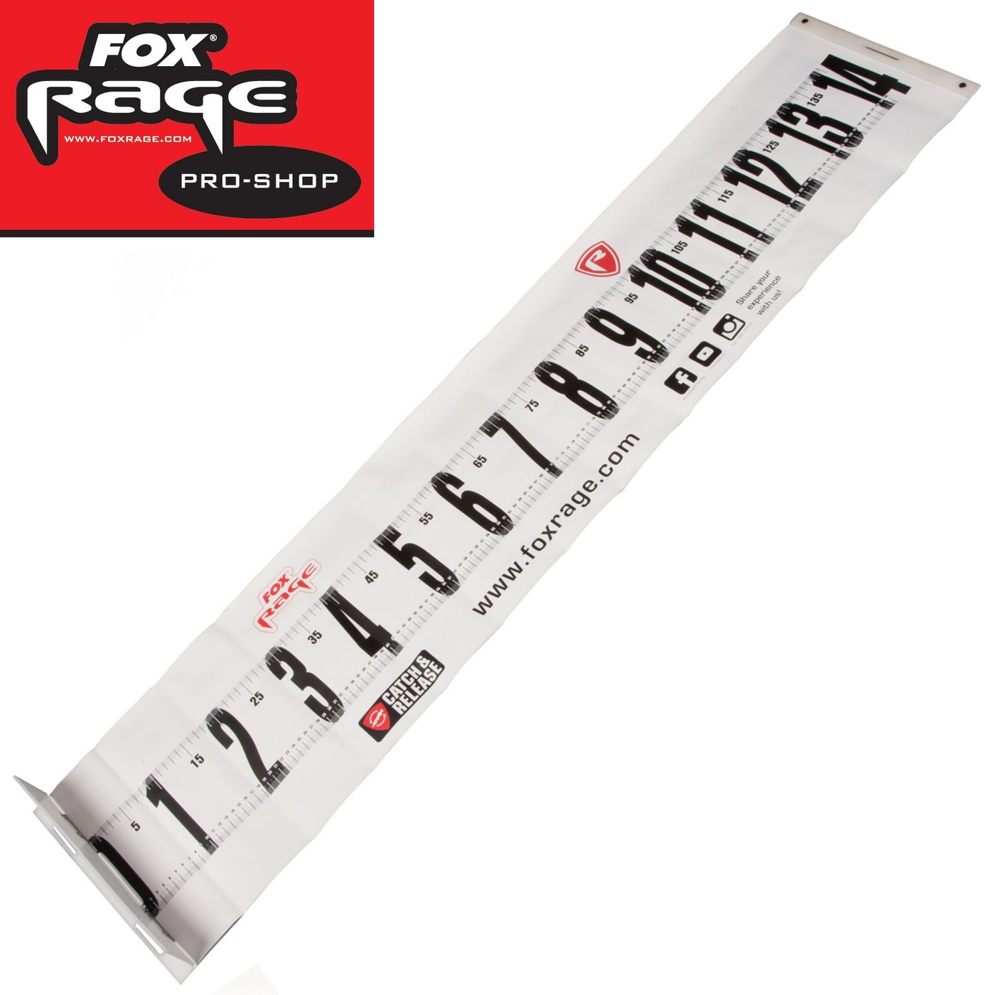 Fox Rage Voyager Fish Measure 140cm - Maßband - Die Messlatte von Fox Rage eignet sich zum Raubfischangeln und mit einer Messskala von 1,40m lassen sich selbst kapitale Hechte und Zander vermessen. Das Maßband kann sehr gut beim Bootsangeln sowie Uferangeln eingesetzt werden und auch beim Streetfishing ist es ein toller Begleiter, da sich das Maßband klein zusammenrollen und somit gut in der Angeltasche verstauen lässt. Am Nullpunkt befindet sich eine feste Kunststoffkante, wo der gefangene Raubfisch mit dem Kopf angelegt werden kann, damit der Angler ein genaues Ergebnis beim Messen erhält.