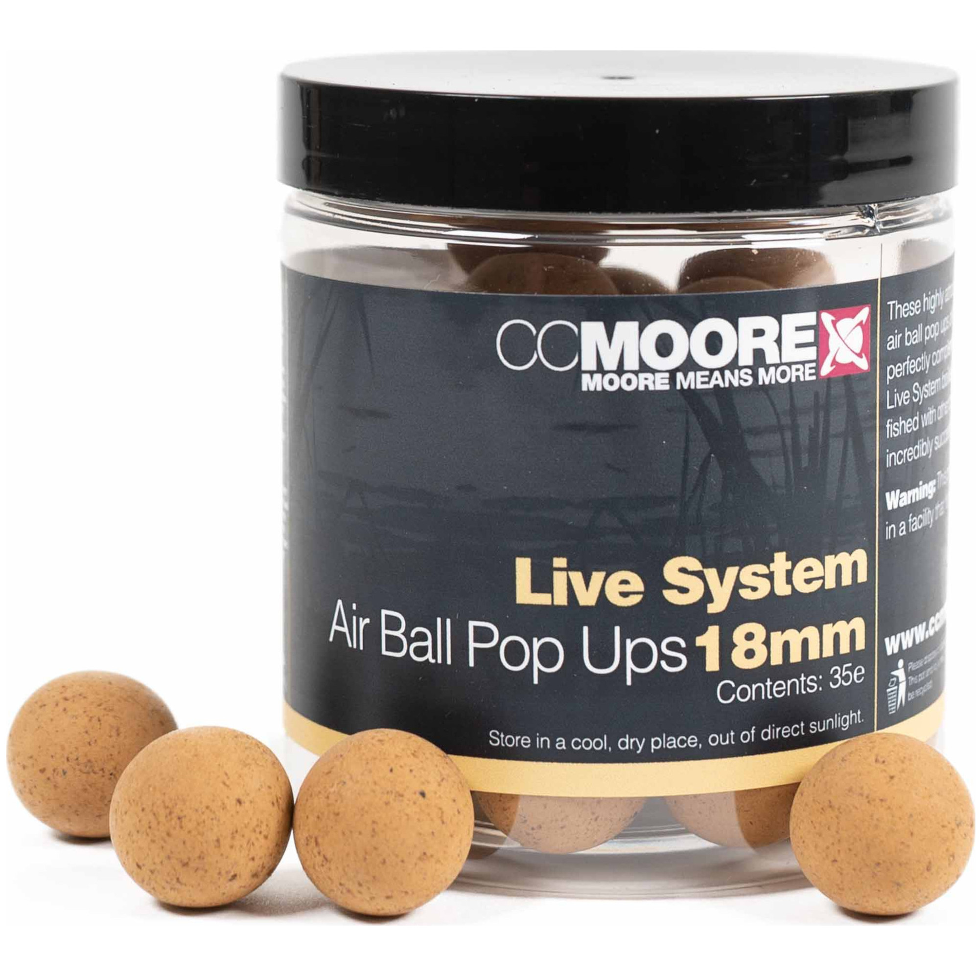 CC Moore Live System Air Ball Pop Ups 18mm: schwimmfähige Karpfenköder mit robuster Haut – gut für Karpfen & Schleie. Jetzt im Shop bestellen!