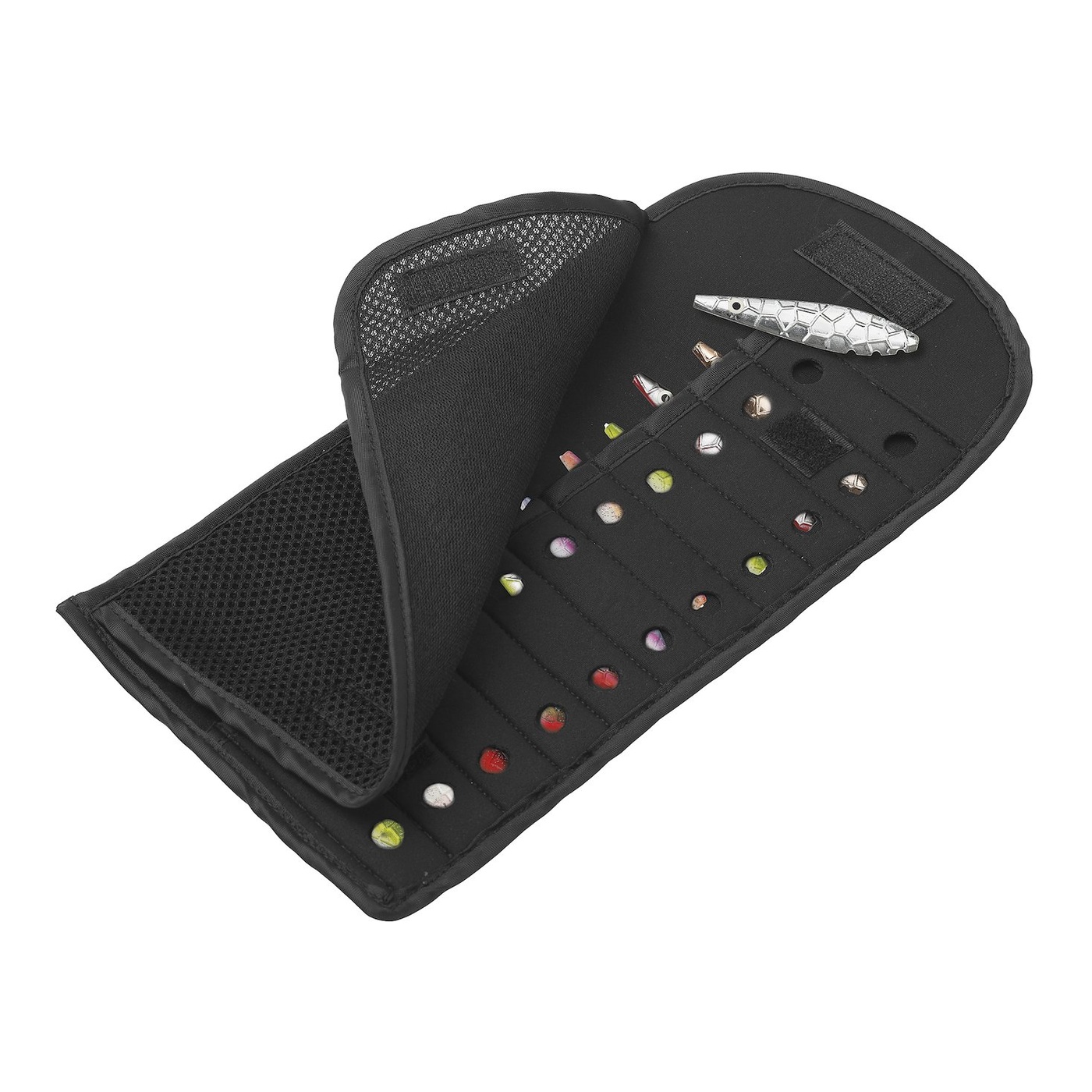 Eine brillante Tasche für Ihre Durchlauf-Köder. Mit 11 Fächern für die meisten Durchlauf-Köder. Kein klappern in der Box mehr, keine Köder, die gegeneinander schlagen, absplitternde Farbe oder korrodierende Köder. Diese Tasche ist einfach genial. * Neopren * 11 Fächer für Köder * Passend für die meisten Inline-Köder bis zu 40g * Klettverschluss * Löcher für einfache Farb-Erkennung und Belüftung * Netz zum Abdecken und Schützen der Köder * Größe 31cmx15cm