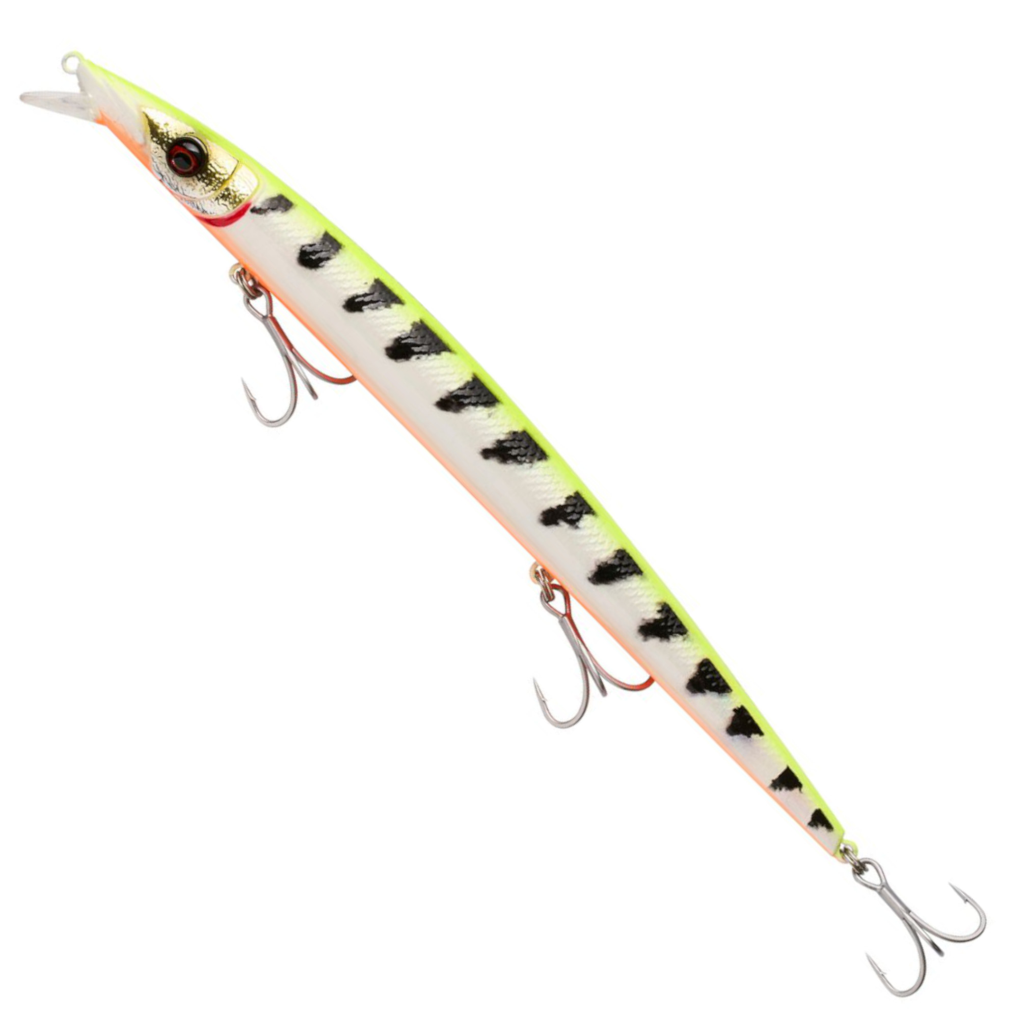 Egal, ob du mit schnellen Jerks, Twitches oder langsamen Einholpausen überzeugst – der Barra Jerk reagiert auf unterschiedlichste Führungsstile und bleibt dabei immer in einer natürlichen Köderposition stehen. Die auffällige Pentagon-Lippe sorgt für lebensechte Bewegungen und macht Raubfische neugierig.