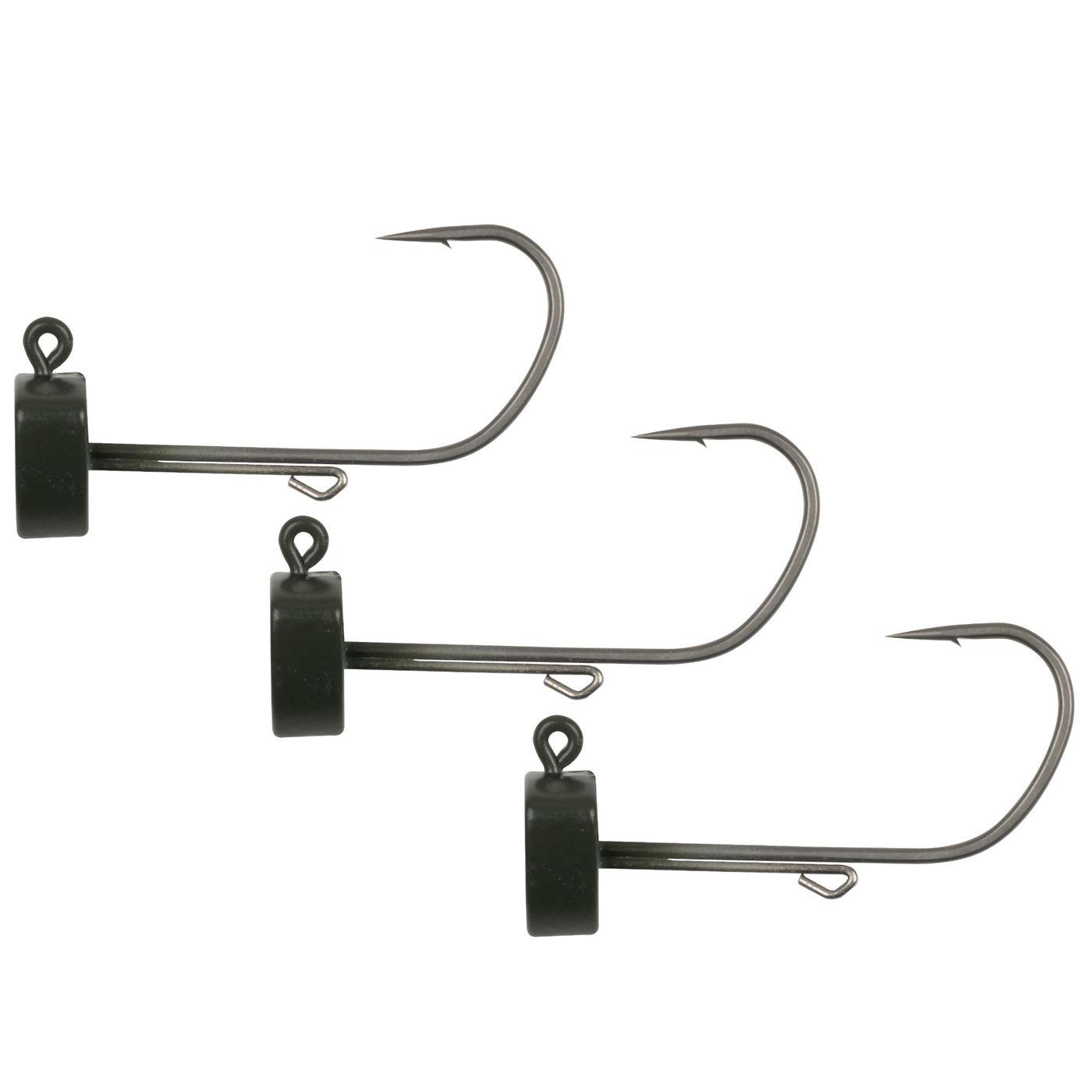 Der scharfe Haken fixiert den Köder, auch wenn du häufig auswirfst. Die nicht reflektierende, mattgrüne Oberfläche schützt vor argwöhnischen Räubern und macht deine Montage unauffällig.