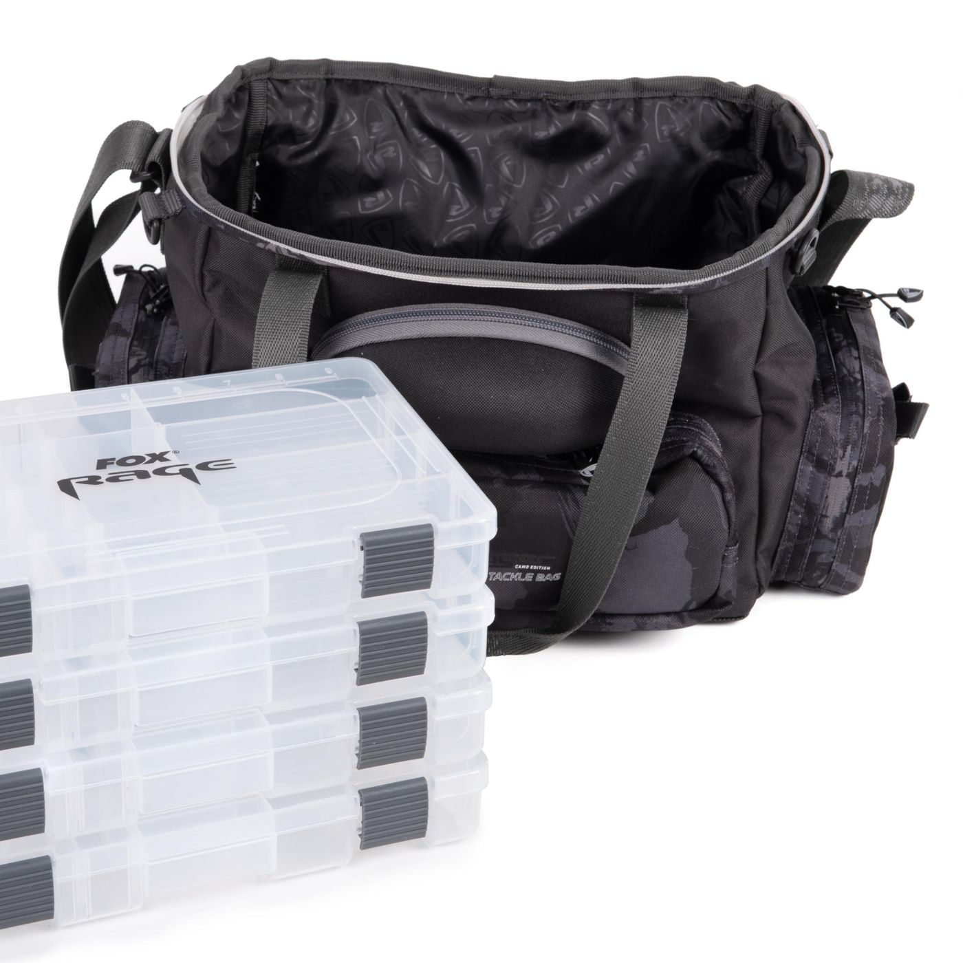 Fox Rage Camo Voyager Medium Tackle Bag: Ordnung für Raubfischangler. Mit 6 Tackleboxen und praktischen Features für deinen Süßwasser-Angeltag.