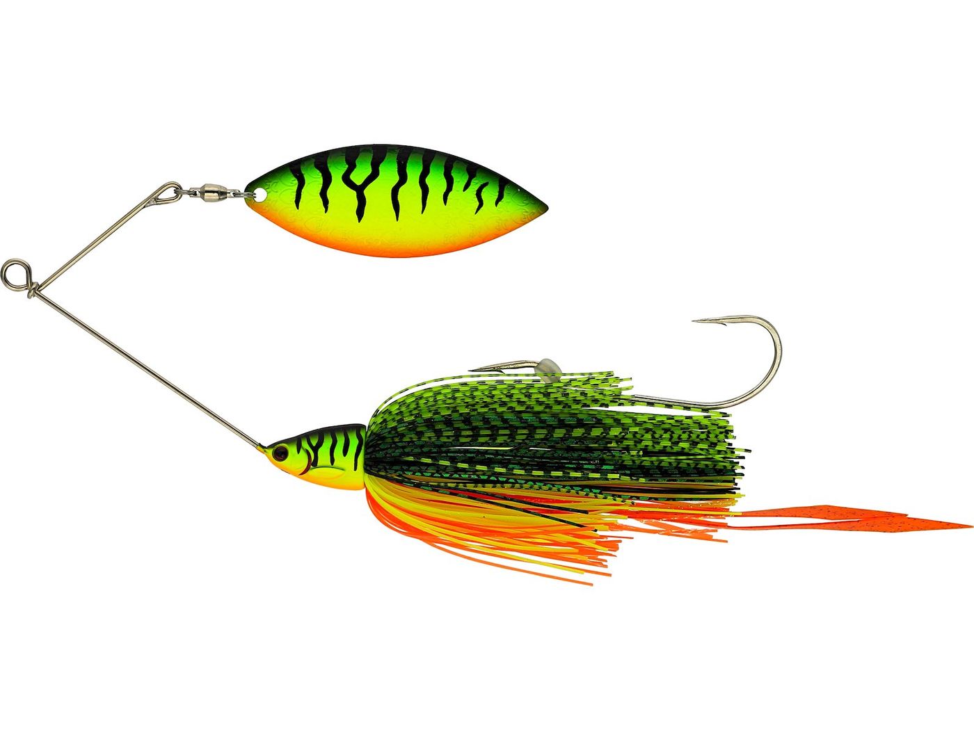 Dieser Spinnerbait ist darauf ausgelegt, auch in schwierig zugänglichem Wasser für Aufmerksamkeit zu sorgen. Dank durchdachtem krautfreiem Design kannst Du ihn kontrolliert in dichter Vegetation oder strukturreichen Uferbereichen führen. Die Blätter und Fransen erzeugen kraftvolle Druckwellen und imitieren attraktive Beutefische.