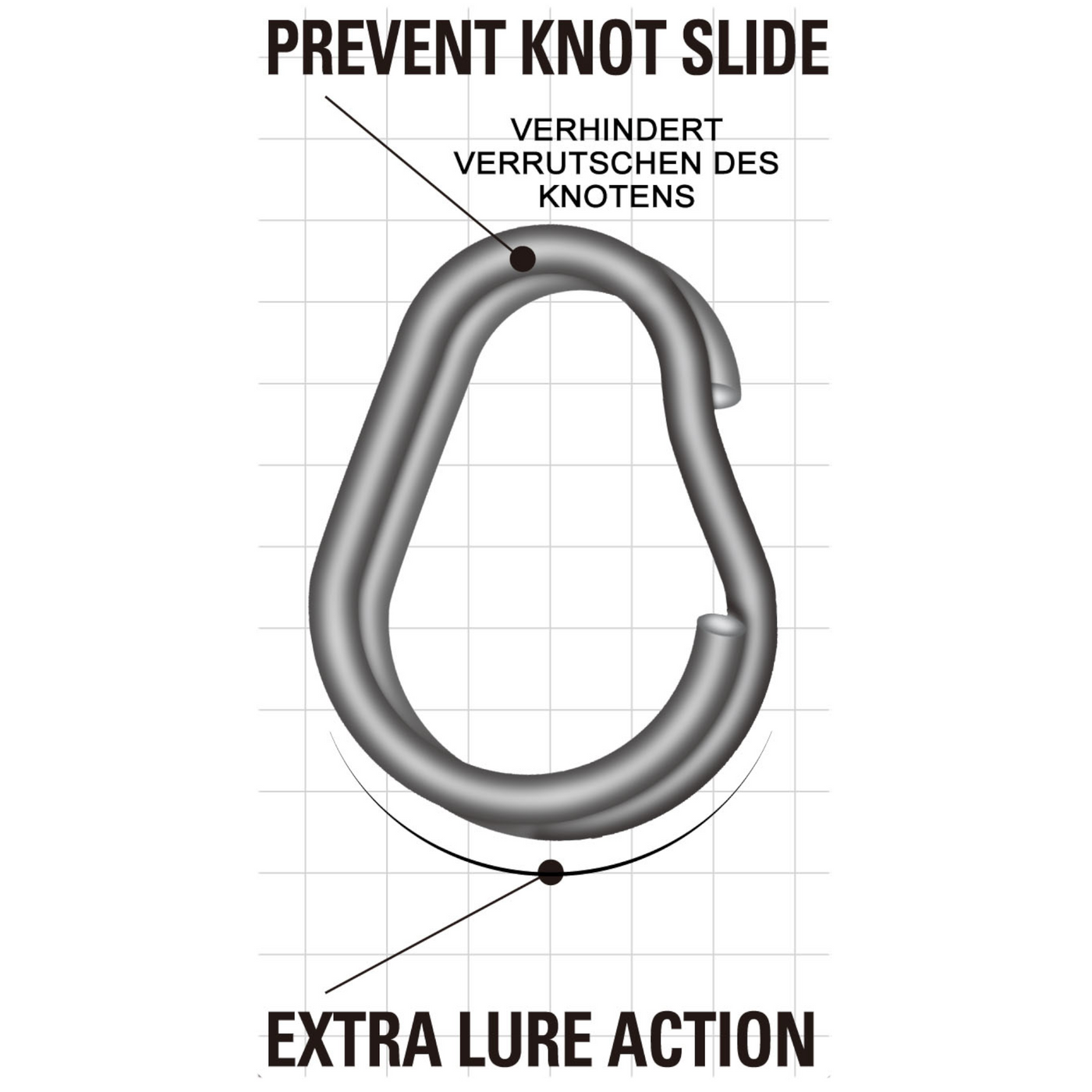 Owner Tropfen-Sprengring (72837) P-37 - Die Seite mit dem großen Radius vergrößert das Köderspiel. Die Seite mit dem kleinen Radius sorgt dafür, dass der Knoten von der Öffnung fern bleibt. Aus Edelstahl. Mit schwarzem Chrom-Finish.
