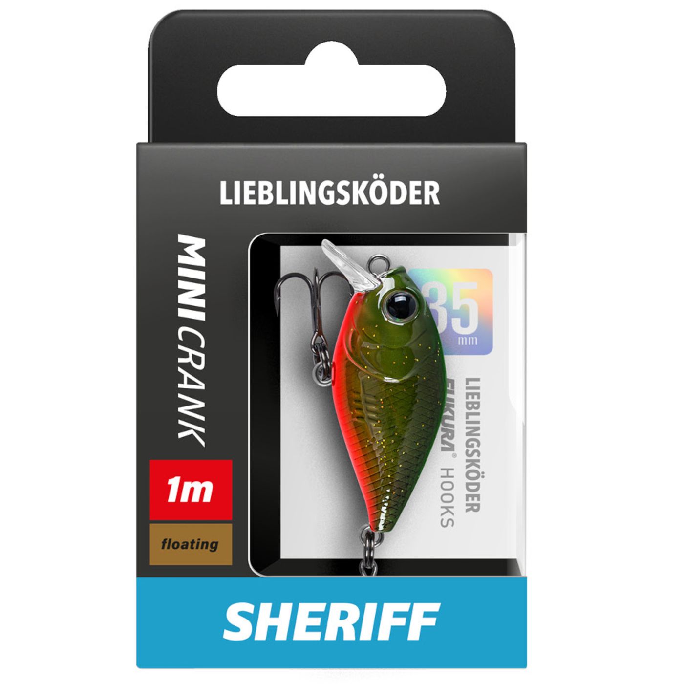Lieblingsköder Mini Crank 35mm 3,6g - Der Mini Crank ist die richtige Wahl für Angler, die gezielt auf Barsch, Forelle, Döbel, Rapfen und noch mehr Barsche angeln möchten. Seine kleine Größe imitiert ein echtes Beutefischchen. Dieser Köder macht Druck und sorgt für sofortige Aufmerksamkeit im Wasser. Die eingebaute Tauchschaufel bringt ihn zuverlässig auf die richtige Tiefe und ermöglicht sowohl langsames Einkurbeln als auch eine schnelle, aggressive Köderführung. Hochwertige Fukura-Haken ermöglichen sicheren Halt im Drill, während das realistische Design mit detailgetreuen Farben auch vorsichtige Räuber überzeugt. Ob im Bach, Fluss oder See, dieser kleine Crankbait ist ein Must-have in jeder Angelkiste.