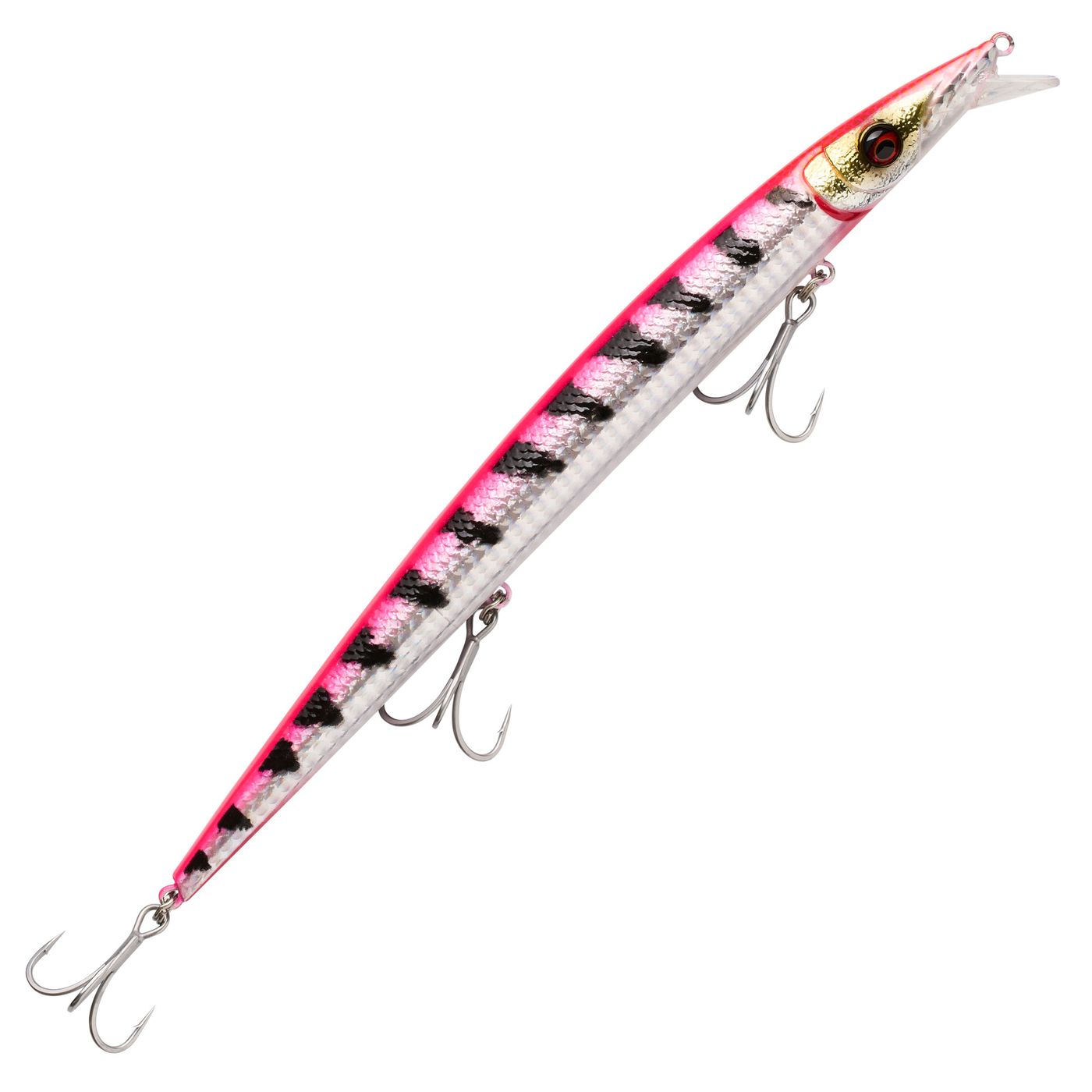 Vielseitiges Laufverhalten für verschiedene Angelmethoden, Details eines kleinen Barrakudas, Kräftige Farben