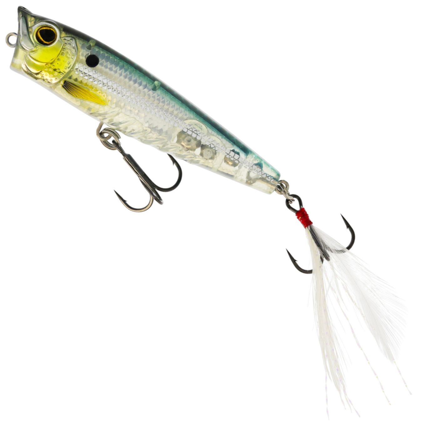 Westin Spot-On Popper 6,5cm 7g Floating - Das Angeln mit Ködern auf der Wasseroberfläche („Topwater“) ist wohl eine der aufregendsten Arten, Fische zu fangen, und der Spot-On Popper ist vollgepackt mit kleinen Details, die ihn zu einem der besten Köder seiner Klasse machen. Der naturgetreue Fischkörper und die realistischen Augen machen ihn auf den ersten Blick zu einem schön gestalteten Oberflächenwobbler. Die verlängerte Drahtöse erleichtert das Wechseln des Köders, ganz gleich, ob du ihn direkt anbindest oder einen Snap verwendest. Die Körperform wurde für präzise, lange Würfe entwickelt und ist sehr einfach zu fischen. Fische den Spot-On Popper mit engen Schlägen/Jerks aus dem Handgelenk oder mit längeren „Zügen“, um den magischen Plopp-Sound zu erzeugen. Verwende den Spot-On Popper über Grasflächen, in Ufernähe, an flachen Stellen oder in tieferen Bereichen, um explosive Bisse von aggressiven Räubern auszulösen. Der Spot-On Popper sitzt mit dem Schwanz nach unten, was in Kombination mit dem getarnten, federumhüllten Haken eine hohe Hakquote ergibt!