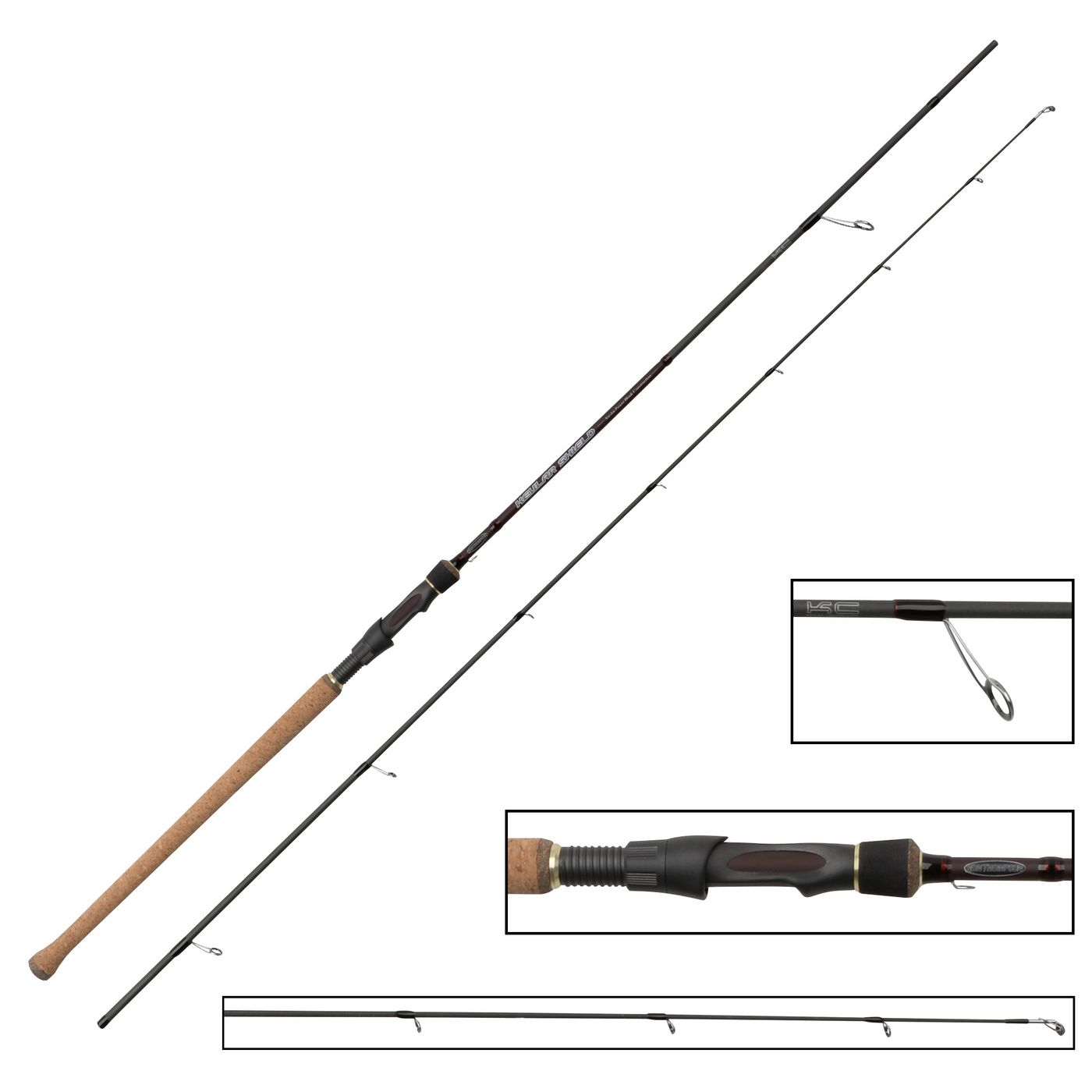 Ron Thompson Kevlar Shield 300cm 25-65g - Allround Spinnrute - Die Ron Thompson Kevlar Shield Serie ist eine starke Rute! Durch Kombination aus stärkenden PBO-Fasern und einer schützenden Kevlarschicht wird ein hoher Schutz gegen Beschädigungen des Blanks erreicht. Diese Spinnrute kann vielseitig für das Angeln auf Raubfische und Forellen eingesetzt werden.
