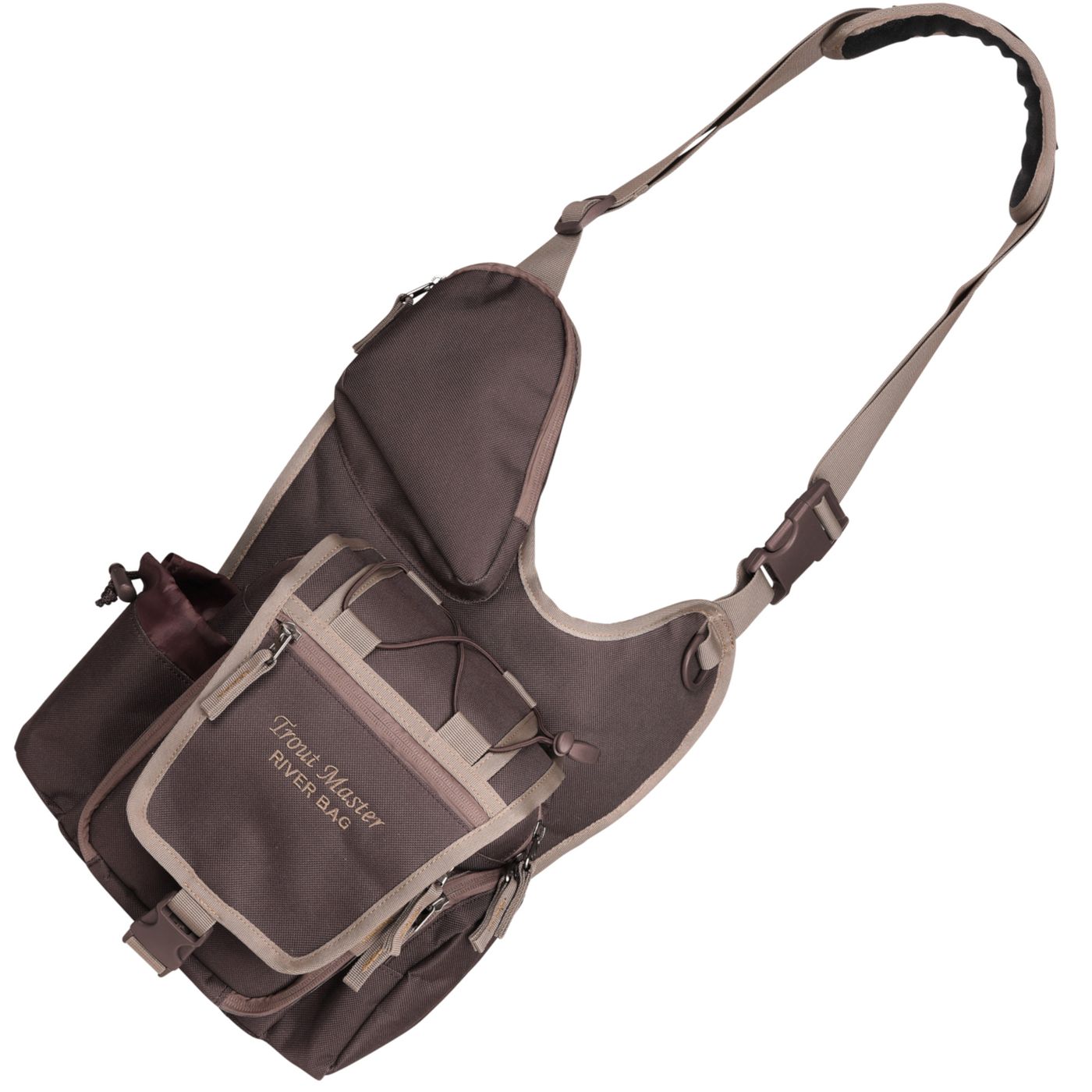 Trout Master River Bag: Beweglich Forellenangeln, flexibel organisiert, Griffbereit – perfekt für mobilen Einsatz. Tasche mit Zubehörfächern & Flaschenhalter.